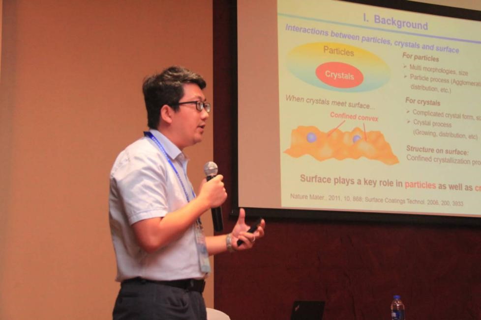 此届学术研讨会交流形式包括大会特邀报告、分会邀请报告、口头报告以及墙报交流。大会特邀来自东京农工大学的Hidehiro Kamiya教授,来自澳大利亚蒙纳士大学的余艾冰教授对自己的研究做了精彩的报告。Hidehiro Kamiya教授致力于研究纳米粒子和细粒子的聚集和分散行为表征和控制,在报告中他利用胶体探针原子力显微镜,对表面改性后颗粒间的分子和纳米尺度表面相互作用进行了表征,基于表面相互作用和分子水平表征的结果,讨论了表面改性分子和聚合物的作用机理,为控制液相和聚合物的色散行为进行了界面结构设计。余艾冰教授对自己所研究的“复杂多相系统的仿真与模拟”结果进行了介绍,余艾冰教授及其团队结合了计算流体力学(CFD),离散离子模拟(DEM)等模拟仿真方法,对高炉炼铁中气固相的相互作用进行了模拟,很好的实现了实际过程的数学化。
