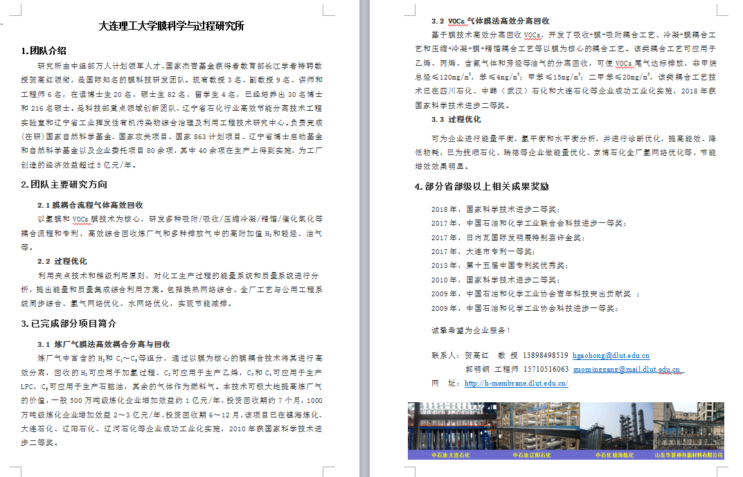 在大会第三阶段的石油化工产业招商引资招才引智对接会上,贺高红教授就团队基本情况以及团队科研成果进行了分享,受到与会专家和企业工程师高度好评,并现场发放了团队简介,此次大会扩大了团队宣传,使更多的企业了解到团队在VOCs回收和H2回收方面的取得的重大科研成果,此次大会后,通过邮件等方式与相关参会企业建立了初步联系。