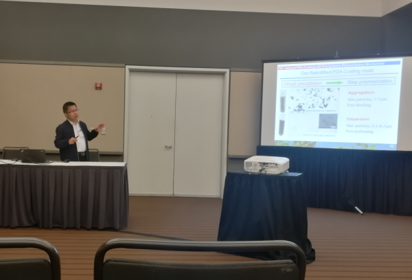 阮雪华副教授做了题为Fe(III)- Induced Polydopamine Coating with “Deposition-Polymerization”Mechanism for Microfiltration Membrane Hydrophilization的口头汇报。