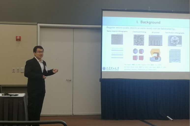 研究生韩明光做了题为Spatial Confined Capillary Flow and Precisely Controlled Crystallization Via 3D Printed Platform: A Comprehensive View的口头汇报。