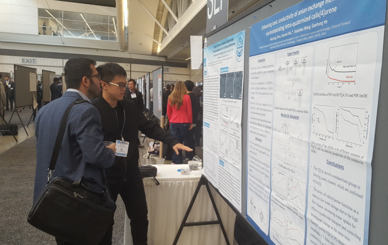 研究生王小舟做了题为Highly Hydroxide Conductive Quaternized Polybenzimidazole Anion Exchange Membranes的海报展示。