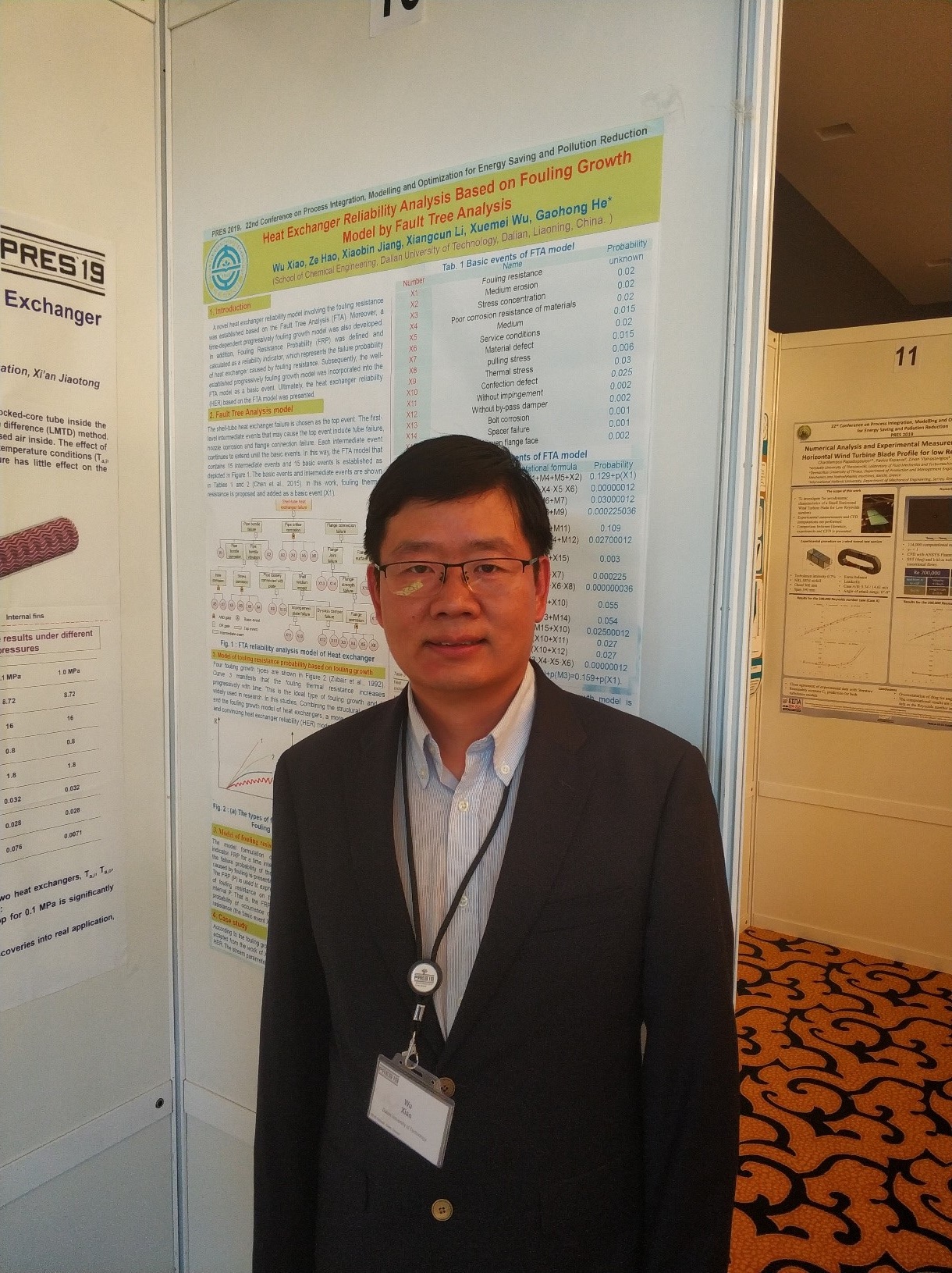 其次,向国际同行展示了自己的研究进展和内容。会上,肖武老师做了题为“Parameters optimization of MTBE reactive distillation process with response surface methodology” 的口头报告,对利用响应面法进行MTBE反应精馏过程参数优化的研究进展进行了系统性的介绍,多位学者对该报告给与了高度评价并提出了建设性建议。另外,肖武老师担任了Separation Processes分会的分会主席,主持报告。除此之外,对“Heat Exchanger Reliability Analysis Based on Fouling Growth Model by Fault Tree Analysis”研究成果做了海报展示,期间有多位知名学者对该研究内容非常感兴趣,进行了充分地交流和讨论,并期待与我们进行更为深入的联系与合作。