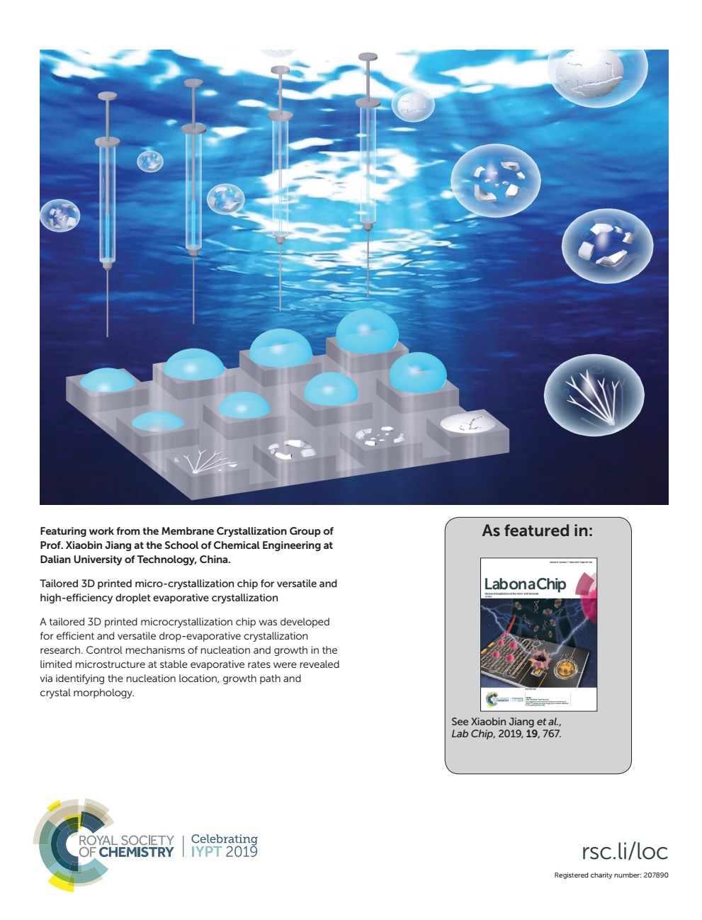 以上研究成果在微流控领域重要期刊Lab on a Chip上以内封底论文发表(图3Lab Chip, 2019, 19, 767-777)。第一作者为研究生韩明光,姜晓滨教授为通讯作者。该研究工作得到了国家重大科研仪器研制项目、国家自然科学基金面上项目(2152781221676043)、科技部重点领域创新团队和大连理工大学星海优青计划支持。