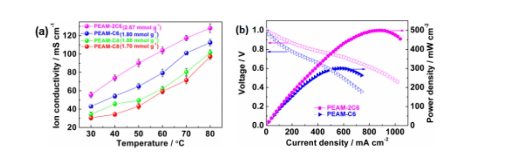 PEAM-C6膜表现出较高的氢氧化电导率(