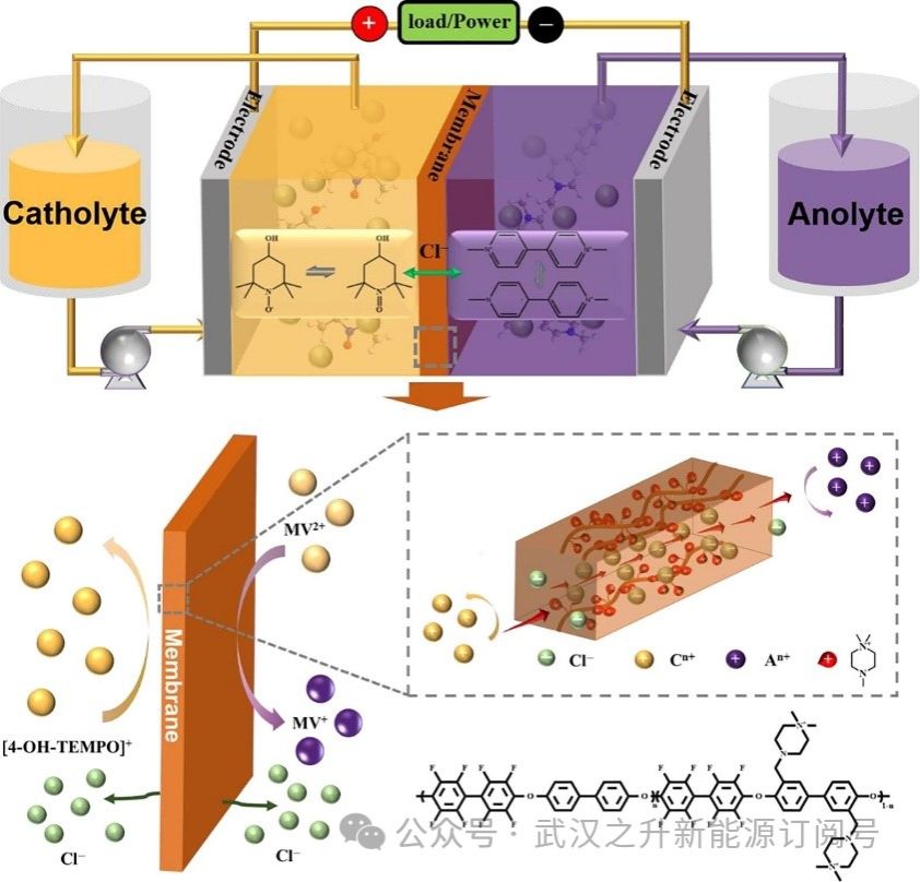 1.通过微结构设计实现高性能中性有机基水系氧化还原液流电池膜中的高阴离子选择性导电性